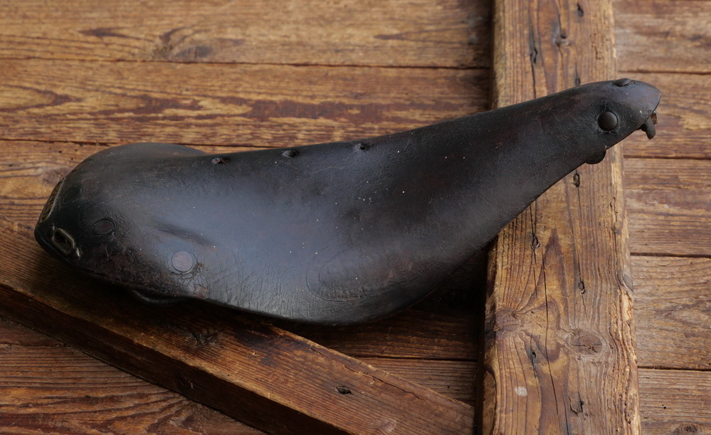 Sattel BROOKS B 19, für Rennrad, Leder, braun, Gestell schwarz lackiert, original 10er/20er Jahre, Länge ca. 34 cm,