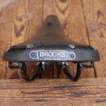 Sattel BROOKS B17, für Rennrad, Leder, schwarz, Gestell schwarz lackiert, 1950er/60er J., Breite ca. 14 cm, Länge ca. 29 cm, gebraucht mit Patina, Zustand gemäß Bildern