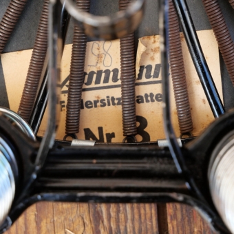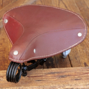 Sattel, Herren, ASSMANN Federsitz #8, Lefa, rotbraun, verchromt/schwarz lackiert, Rosshaar-Polster, original 30er/40er Jahre,