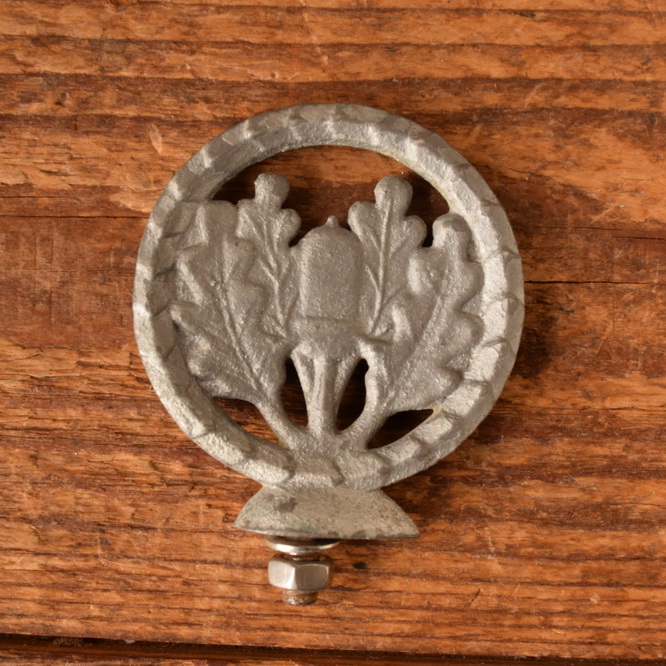 Universale Schutzblechfigur EICHENLAUB - passend für jedes Rad, Alu Druckguss, orig. Altbestand 30-40er Jahre, Zustand siehe Bild