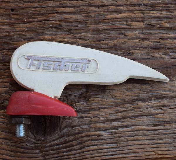 Schutzblechfigur FISCHER, Kunststoff, orig. Altbestand 60er Jahre, Zustand siehe Bild