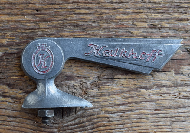 Schutzblechfigur KALKHOFF, Alu Druckguss, orig. Altbestand 50er Jahre, Zustand siehe Bild