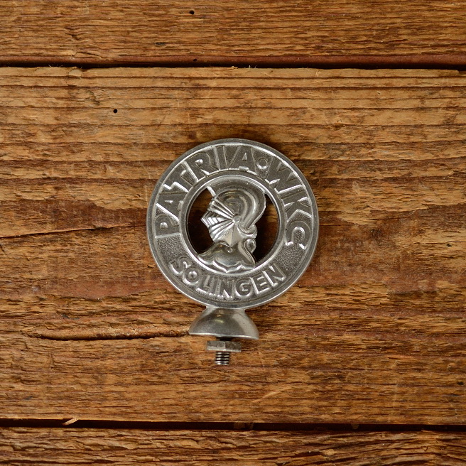 Schutzblechfigur PATRIA WKC SOLINGEN, Alu Druckguss, neu aus Altbestand 50er Jahre, Zustand siehe Bild