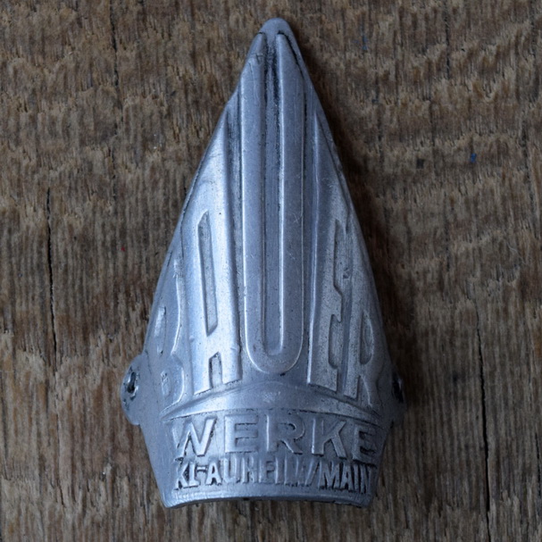 Steuerkopfschild BAUER, 50er Jahre, Originalschild aus Sammlungsbestand, Lochabstand 32 mm