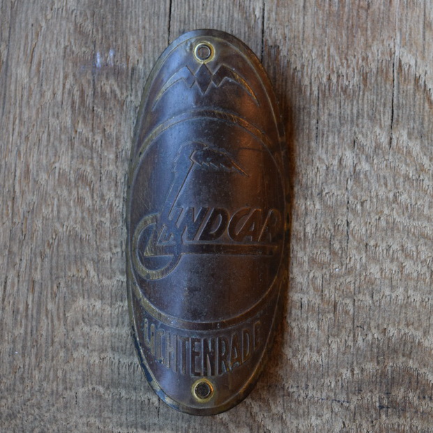 Steuerkopfschild Lindcar, 20er Jahre, Originalschild aus Sammlungsbestand, Lochabstand 74mm
