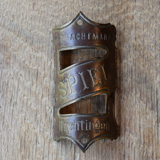 Steuerkopfschild Spiel, 20er Jahre, Originalschild aus Sammlungsbestand, Lochabstand 60 mm Ideal für den passenden Fahrradoldtimer oder die Sammlervitrine. Zustand siehe Bild.