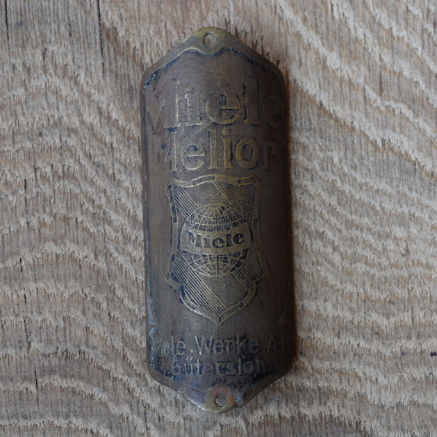 Steuerkopfschild Miele Melior, 30er Jahre, Originalschild aus Sammlungsbestand, Lochabstand 79mm