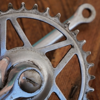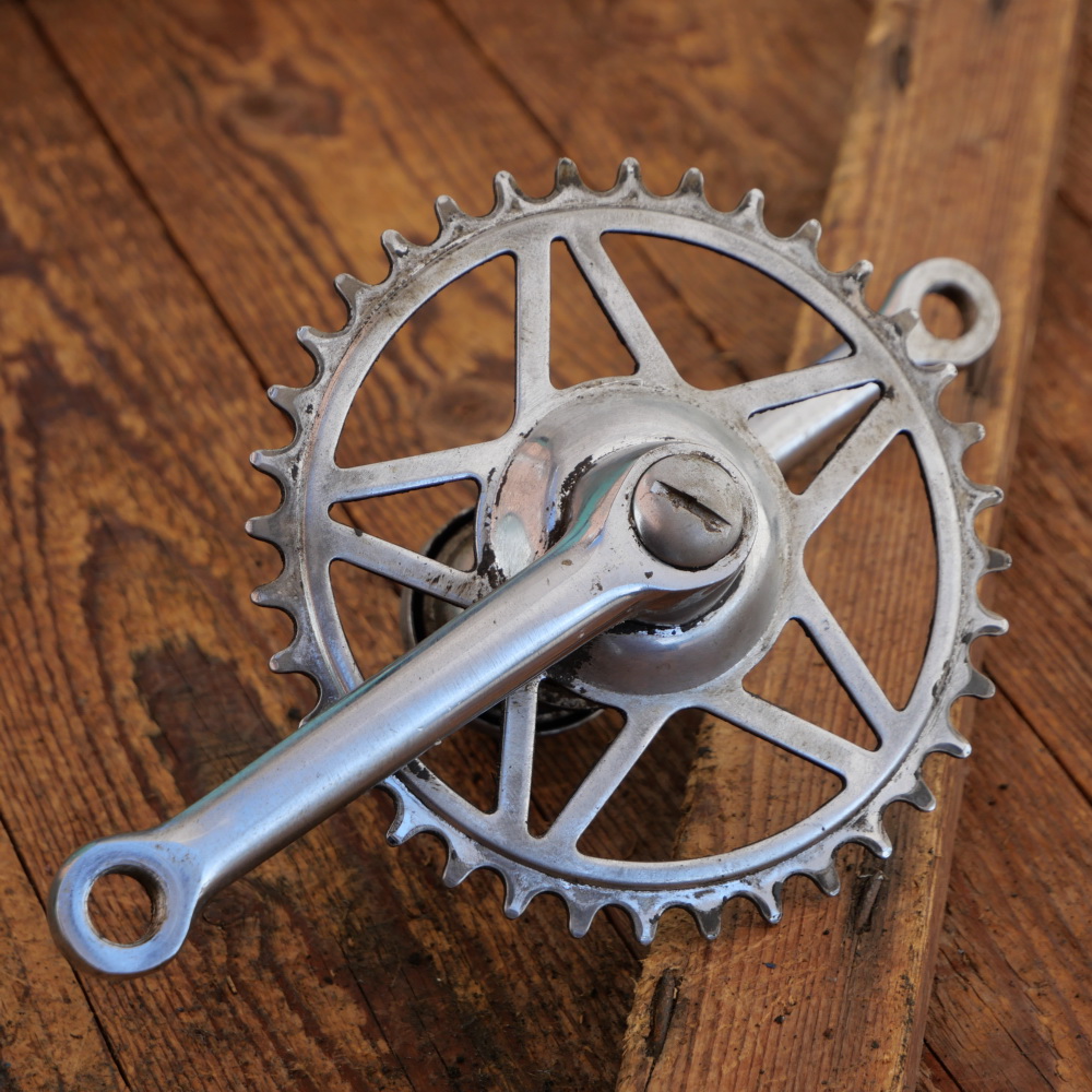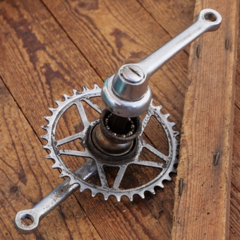 36 Zähne, Kurbellänge 130 mm, Durchmesser Lagerschalen 40 mm, gebraucht mit schöner Patina,