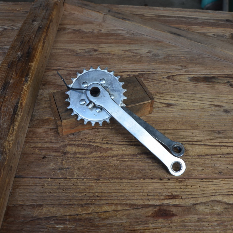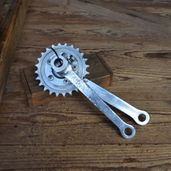 Kurbelgarnitur Keilausf., orig. 50er Jahre, verchromt, gebraucht mit alterstypischen Gebrauchsspuren, siehe Bilder. Kurbellänge: 170 mm. Rares Originalteil für den passenden Klassiker!