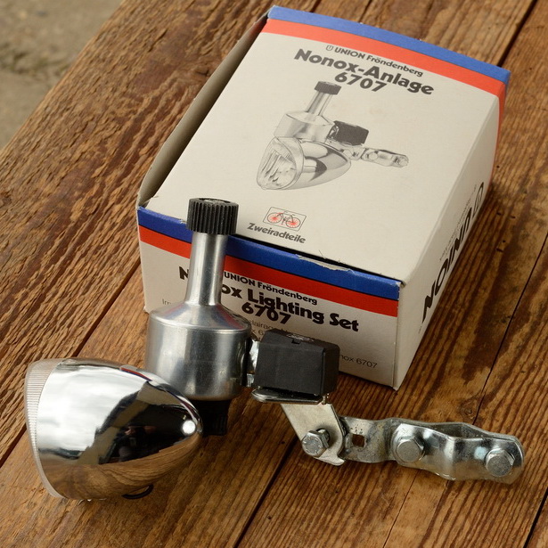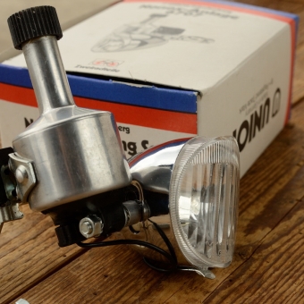 UNION Nonox Anlage, Dynamo-Scheinwerfer Kombinationen, orig. 60-80er J., !!! ohne Halter !!! Ab 1967 gefertigt, war diese schön gearbeitete Lichtanlage lange Zeit ein Muß für Halbrenner, Randonneure, Sporträder etc. Nur noch wenige der Anlagen sind hie