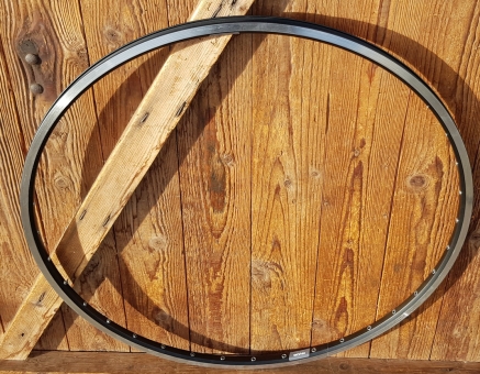 Felge f. Drahtreifen "RIGIDA RYDE Chrina", 28", Alu schwarz, 36 Loch, 20 mm breit (außen gemessen), Hohlkammerfelge geöst, schöne Felge für klassische Rennräder / Randoneure aller Jahrgänge, (Decals sind leicht entfernbar)