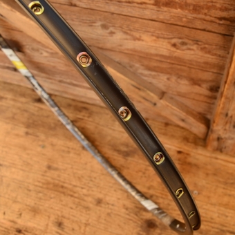 Felge für Drahtreifen "Campagnolo Omega Strada" 28 Zoll (622-13), Breite 20 mm, Lochzahl 32, Nippelbohrung 4,2 mm geöst. Oberfläche braun, Zustand: NOS in OVP