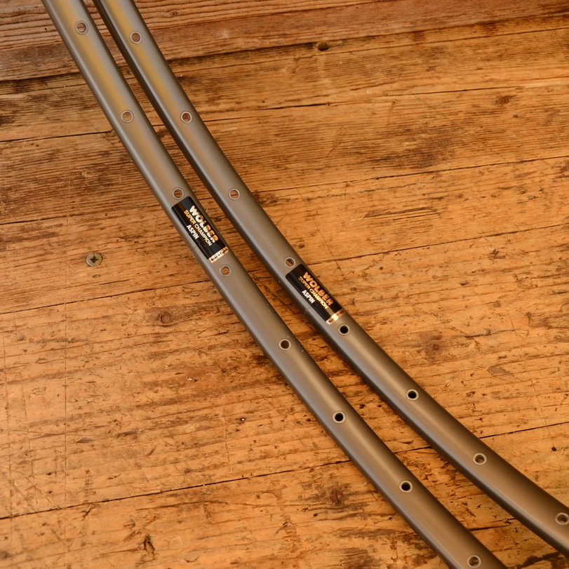 Felgensatz für Schlauchreifen "Wolber Super Champion ASPIN" 28 Zoll, Breite 20,4 mm, Lochzahl 36, Nippelbohrung 4,4 mm geöst. Oberfläche grau-anthrazit, Zustand: NOS in OVP