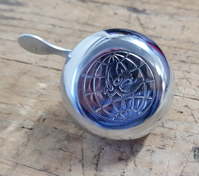 Fahrrad Glocke / Klingel, orig. DDR !, klassische Glocke , verchromt mit Prägemotiv, orig. 70/80er Jahre