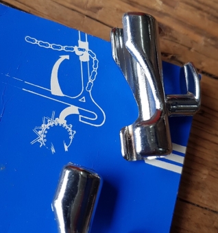 Kettenaufhänger zum einfach aufklicken auf den Hinterbau (s. Bild). Unverzichtbar bei Demontage des Hinterrades am Rennrad / MTB, so bleibt die Kette sauber in Position und kratzt nicht am Rahmen etc.. orig. 70-80er Jahre, NOS