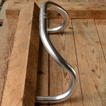Rennlenker Bahnlenker "PISTA", f. Bahnrad, Fixie etc., Alu, ungemarkt, Breite=42,5 cm (Außenmaß), Klemmung 25.4mm (1Zoll), klassische Ausführung. Für 30-90er Jahre Renner passend.