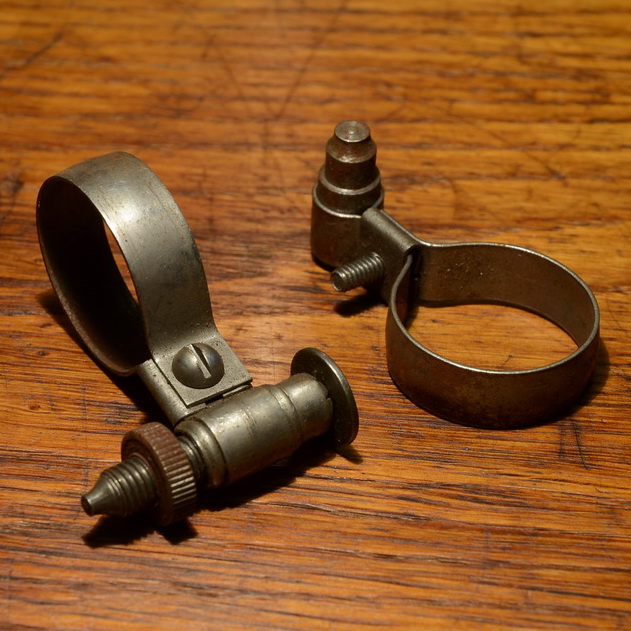 Spitzpumpenhalter, Stahl unbehandelt aus Altbestand, mit Federklemmung u. Feststellschraube