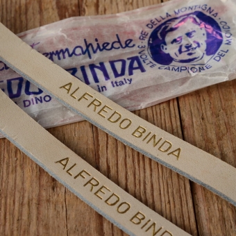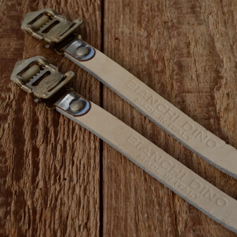 Pedalriemen "ALFREDO BINDA", altweiss, Leder, orig. Altbestand 60/80er Jahre, NOS, mit Bianchi Dino Prägung, unverzichtbar für alle Räder der Spitzenklasse