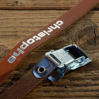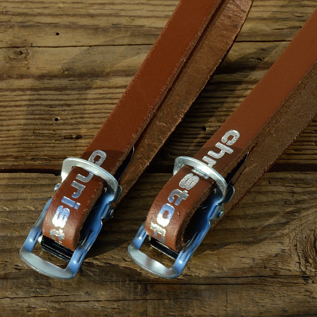 Pedalriemen "CHRISTOPHE", braun, bestes Leder, hochwertige Ausführung, Verschluß glanzverzinkt