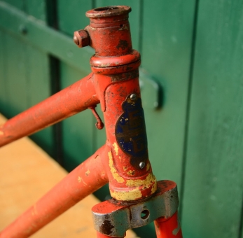 Damen-Rennrahmen "F. H. Grubb", 26/27 Zoll, 50er Jahre, Rahmenhöhe 51 cm, leichter Rohrsatz, hochwertig gearbeitet incl. Gabel und Innenlager. Ideal zum Aufbau eines Fahrradklassikers nach eigenen Wünschen.