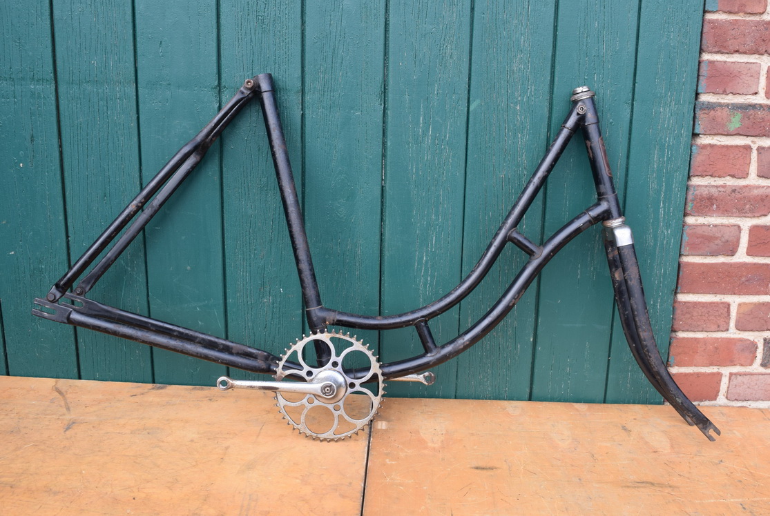 Fahrradrahmen "Miele Mondia" 26 Zoll (Vollballon 26 x 2,00), Rahmenhöhe 55 cm, Rahmennummer 236XXX mit Bandfeststeller und Tretlager, 30er Jahre, Originallack