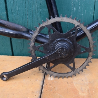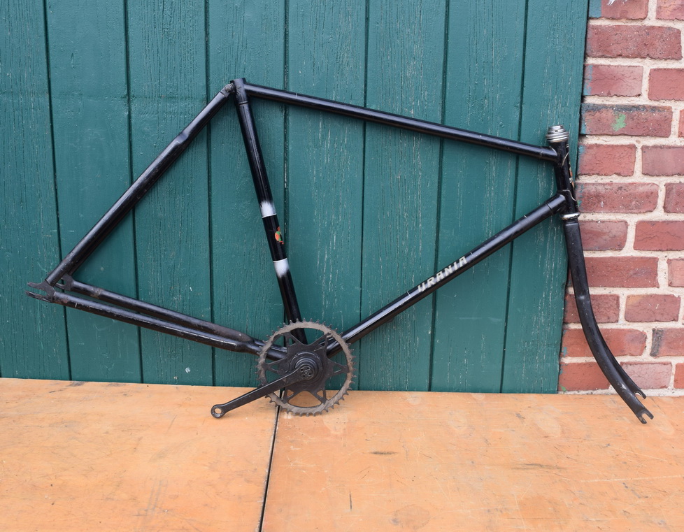 Fahrradrahmen "Urania" 28 Zoll, Herrenausführung, Rahmenhöhe 55 cm, Rahmennummer 700XXX, Hierbei handelt es sich um einen "Adler"-Rahmen der 20er Jahre, der mit der Marke "Urania" gelabelt wurde.