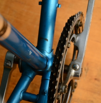 Rennrahmen "VEB Elite Diamant", 70er/80er Jahre, RH: 62 cm (c-t) , Rahmennummer 9559XXX, Der Rahmen ist nachträgich mit Bohrungen im Oberrohr zur Aufnahme eines Bremszuges versehen worden. Es ist ein 3-fach Kettenblatt verbaut worden, welches am Diamantrad als äußerst selten gilt. Ideal zum Aufbau eines Klassikrades nach eigenen Wünschen und Vorstellungen.