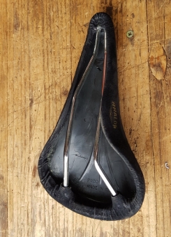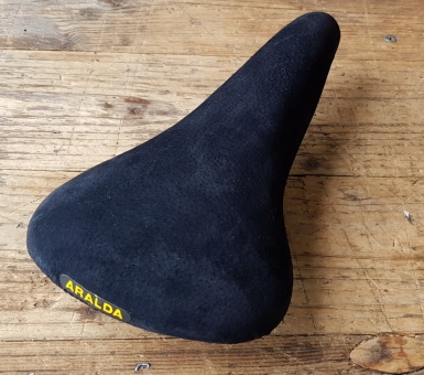 Sattel Rennrad "ISCA Aralda", Wildleder schwarz, NOS 70/80er Jahre, ca. 275 x 145 mm. Seltene Gelegenheit, einen solchen Sattel noch NEU aus altem Lagerbestand zu finden !