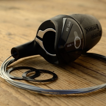 Schalthebel "STURMEY ARCHER Grip Shift", 3-Gang, schwarz, orig. 80/90er Jahre. incl. Schaltzug (Innenzuglänge=2250mm)