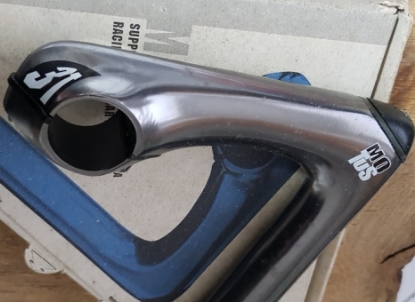 Lenker Vorbau "3ttt MOTUS", Alu titangrau, L=130mm, Klemmung= 25,8 - 26,0 mm, NOS/NIB, Schaftmaß 22.2mm, orig. 90er Jahre, Luxus-Modell der italienischen Schmiede